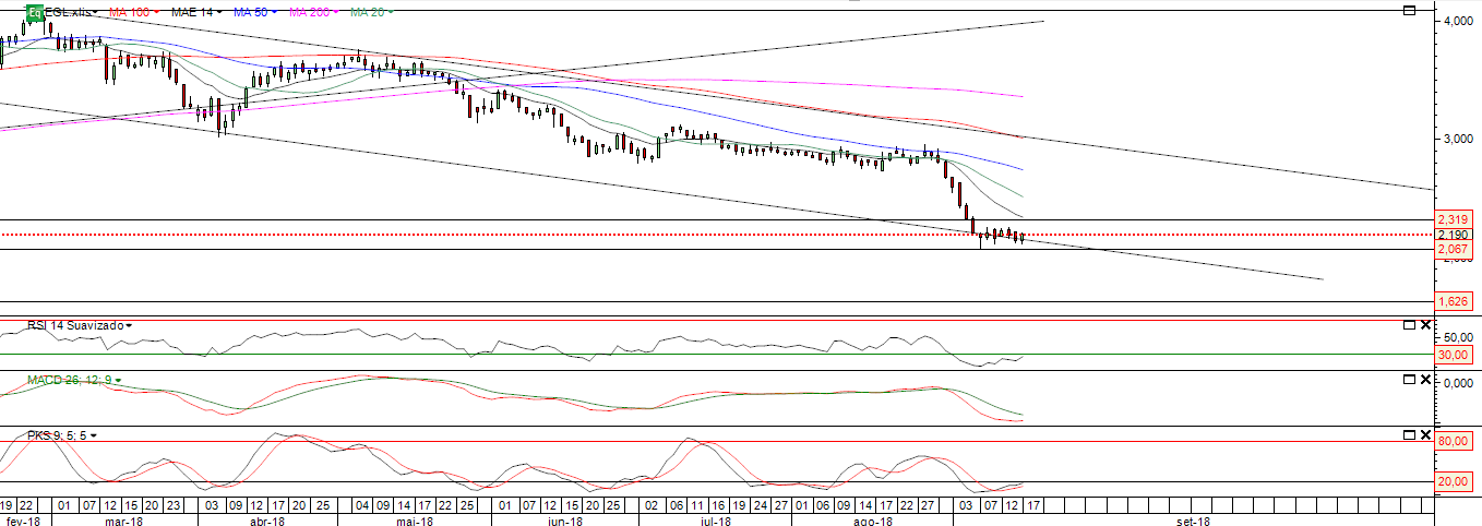 A mota continua bearish,provável zona de ressalto,indicadores bastante vendidos até ver...