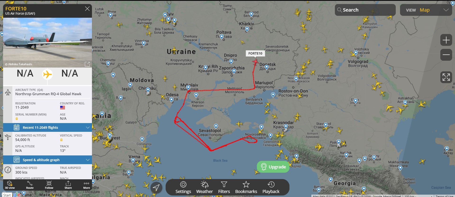 Ontem, o RQ-4 Global Hawk (FORTE 10, aviao de alta altitude não tripulado da aviação militar US) passou o dia a vigiar a zona de fronteira entre ambos os países.