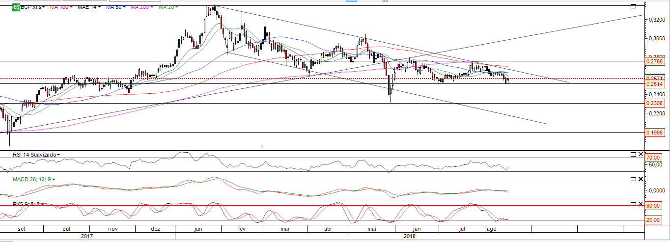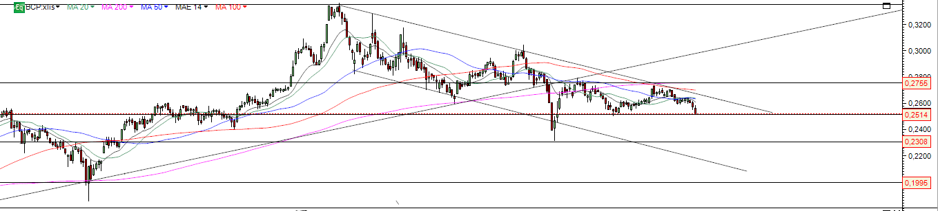 BCP como é visível no gráfico está num ponto crucial na zona dos 0.25