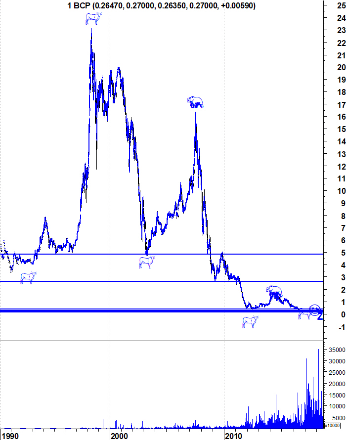 Ulisses Pereira Escreveu:Os 0,27 não me parece que tenham qualquer relevância.deixo aqui os gráficos actualizados do Bull Market do BCP.