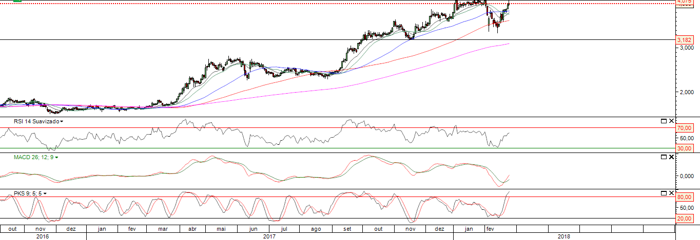 * A semana de 19/02 a 23/02 abriu a 3,755 e fechou a 3,970; e