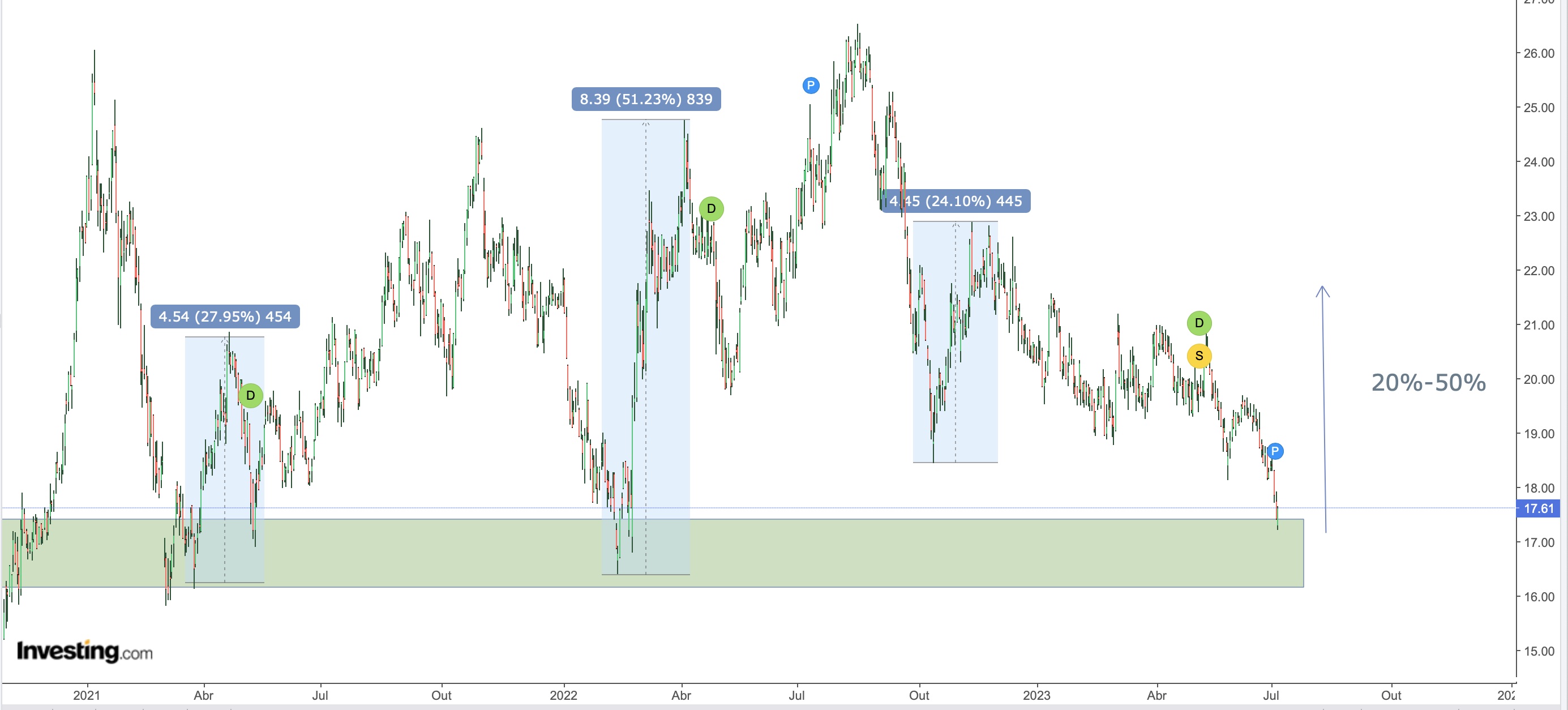 Depois de vir abaixo dos 18 euros, estive tentado a comprar nos 17,20-17,30.