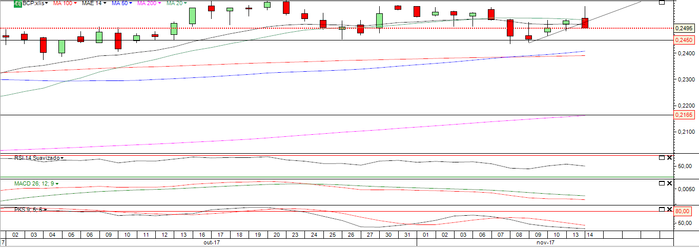 O que me agradou hoje no BCP foi não fechar abaixo de 0,2495 e o facto de ter tido mais um dia forte de consolidação.