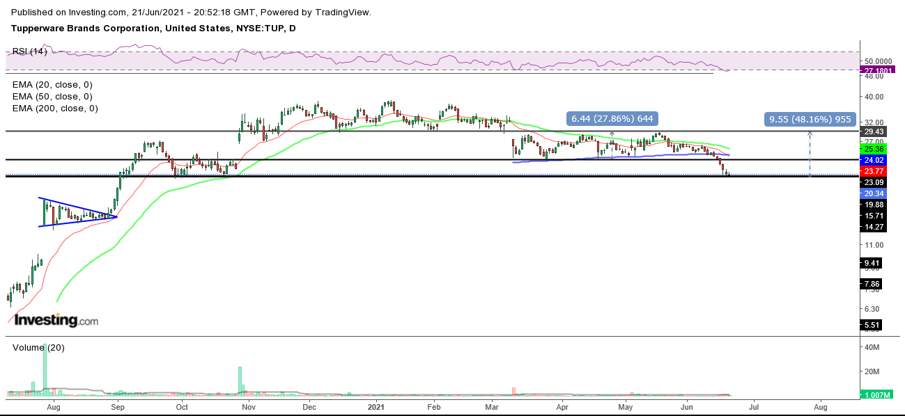 Desde março que a ação andou a negociar no range $23-$29,50, (cerca de 27%), tendo no dia 15 de junho quebrado esse suporte, caindo para os $20, que corresponde ao valor mais baixo desde início de setembro e que "segurou" a ação por três vezes, até final de outubro.