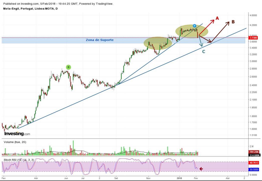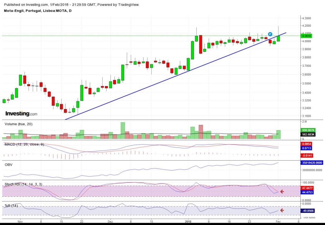 A tendência é de alta sem dúvida, mas temos que olhar para o suporte na zona dos 3,65