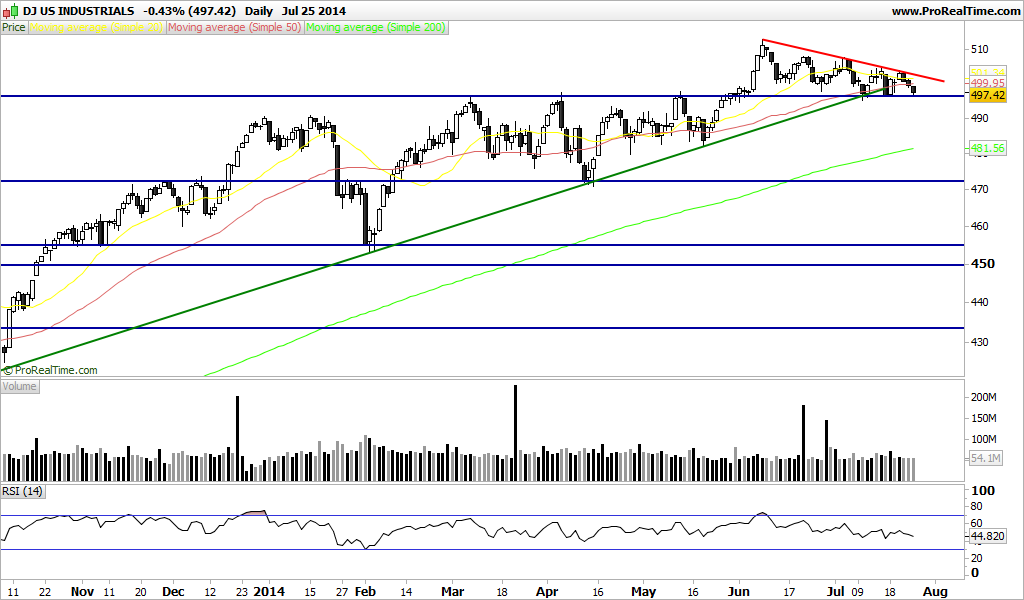 O dow é neste momento o indice americano mais fragil. Tens indices que ainda estão muito fortes como por exempo o nas que não quer dar sinais, pelo menos até ao momento, de querer ceder. Já o sp parece querer escacar a lta de curto prazo mas pra já ainda é cedo, a não ser que a tia presidente agora as 19h de uma ajudinha