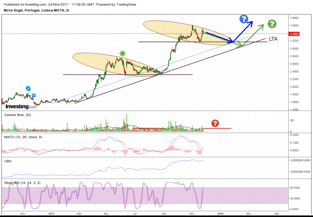 Para rompermos a zona de resistência que como podemos ver é uma zona chave, conforme podemos ver no ano de 2015. Vamos precisar de um rally de natal ou de uma notícia (na minha opinião). No entanto se a ME não precisar de nenhuma destas condicionantes para furar com volume a zona de resistência, então podemos ter um ano de 2018 em grande. No entanto como não sou vidente, vou acompanhado, calmamente.
