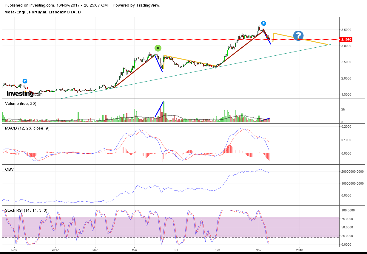 Tecnicamente a mota engil continua com o seu bull market sem dar sinais de inversão de tendência como se pode observar no gráfico do eaglerepeater