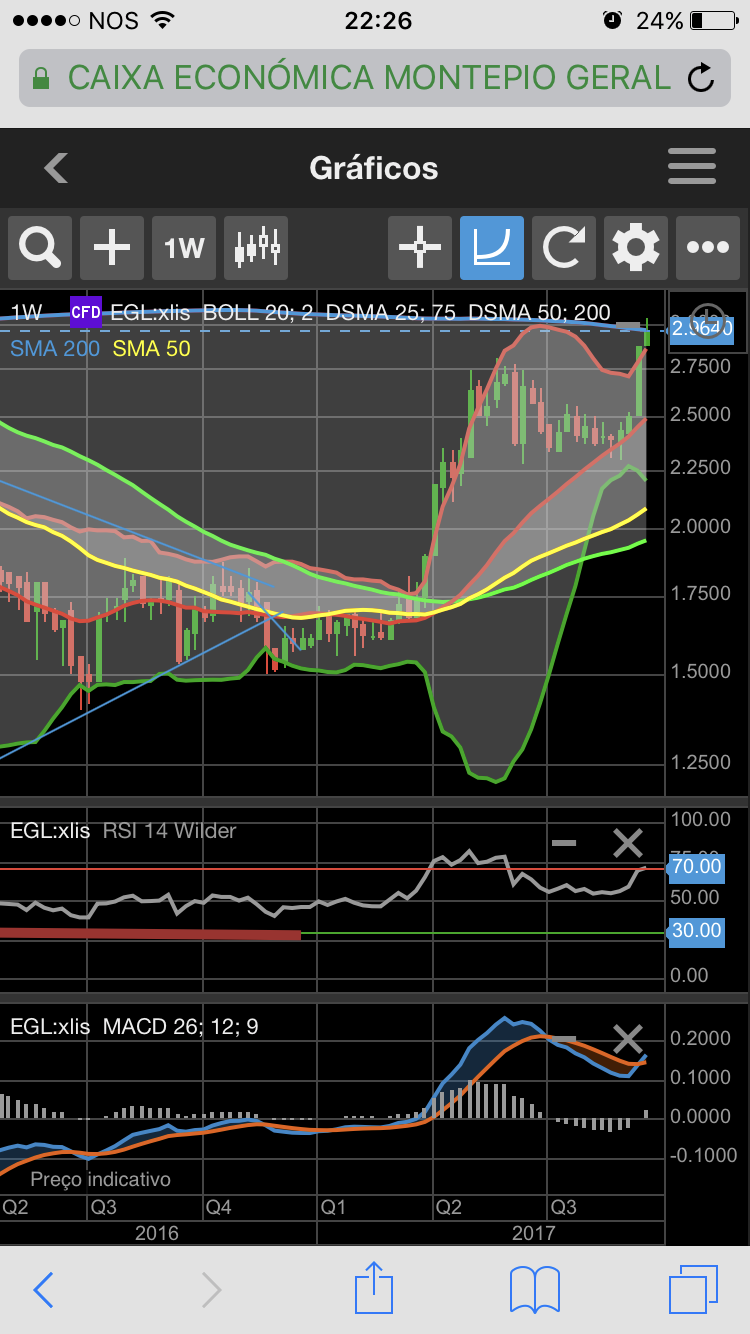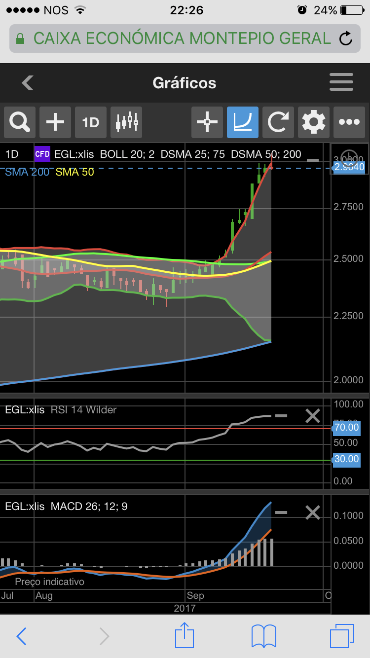 A nível semanal, os indicadores revelam que, tem tudo para continuar até aos €3,10, ou serão €3,50;![]()