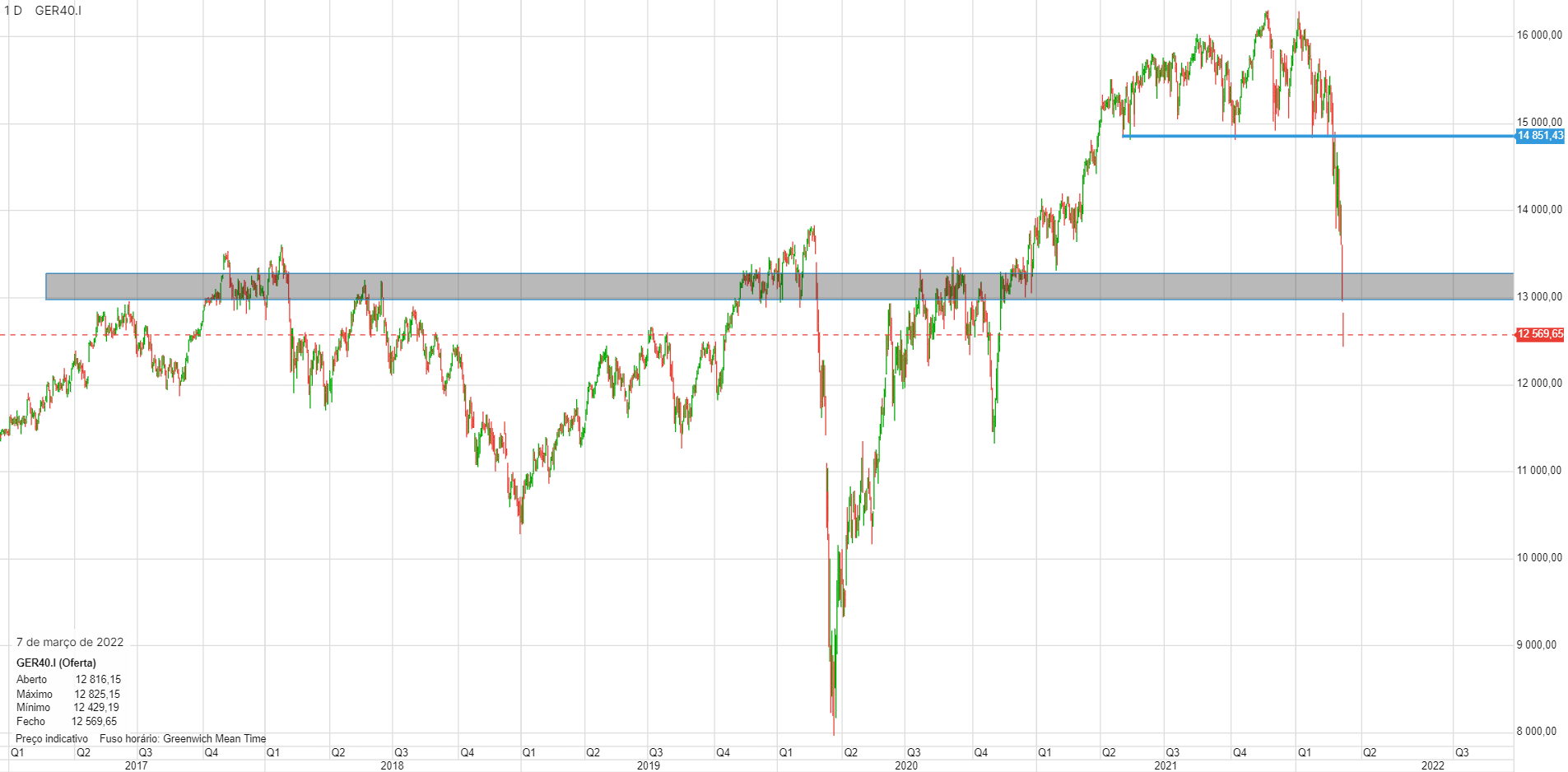 A coisa está preta. Já não arrisco a dizer nada no DAX. Relembro que quando foi do covid, desceu perto de 50%.