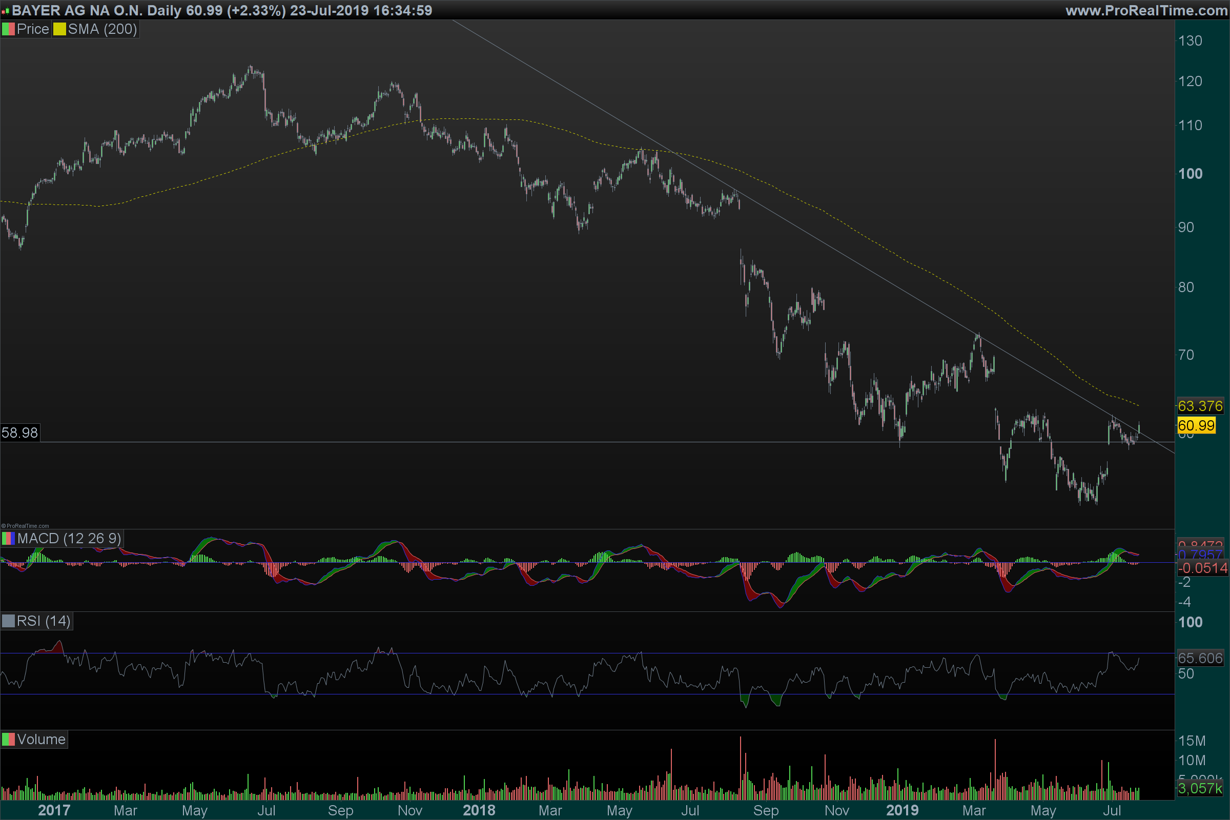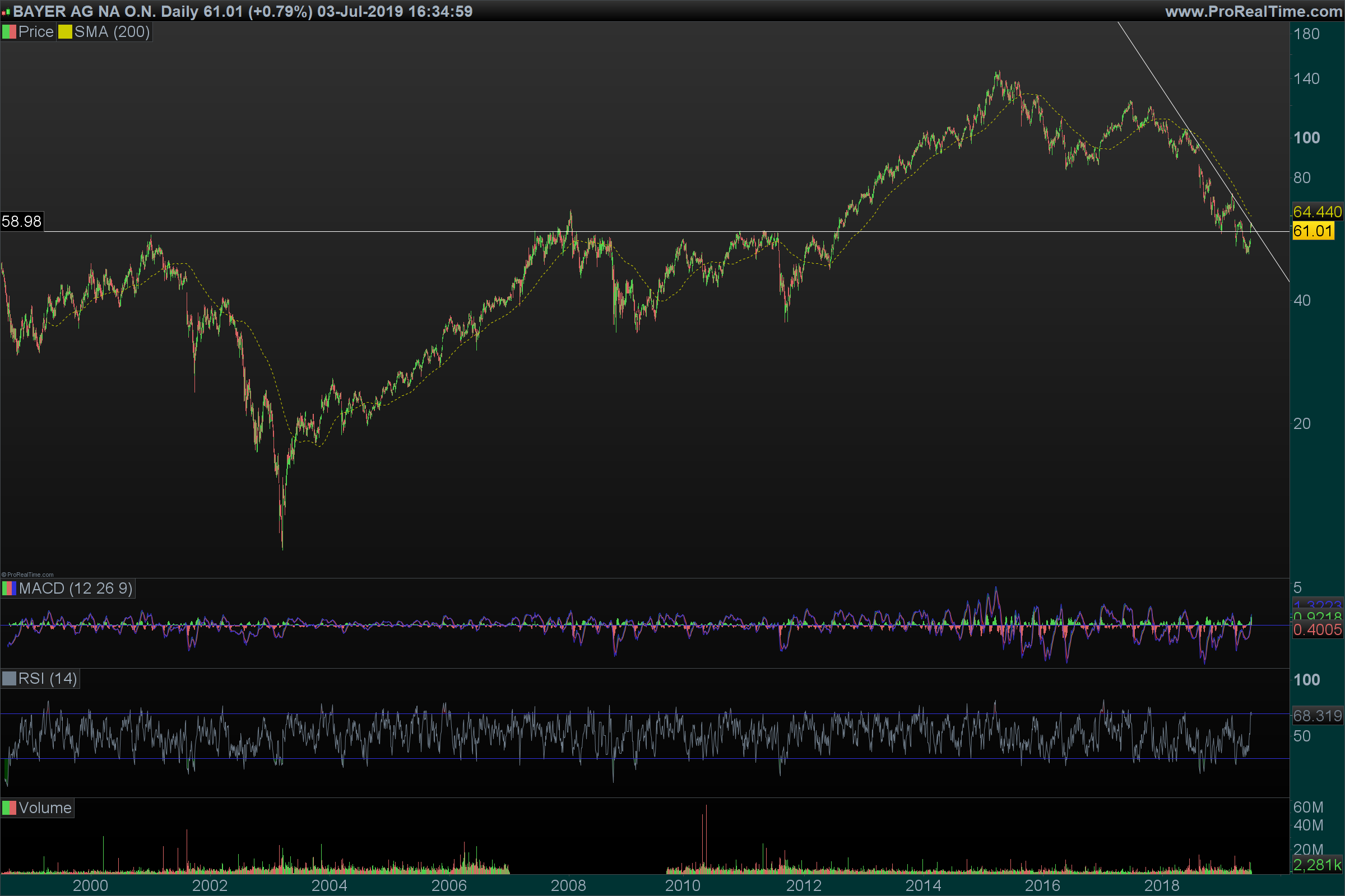 Ao preço de hoje continua com um DY > 4,59%, sector farmacêutico por norma é um setor defensivo em tempos de crise e a cereja no topo do bolo seria as decisões em tribunal começarem a dar razão à Bayer/Monsanto (o que para mim faz todo sentido visto nao haver dados científicos que efectivamente o glisfato tenha tido uma relação de causa/efeito nos casos de cancro).