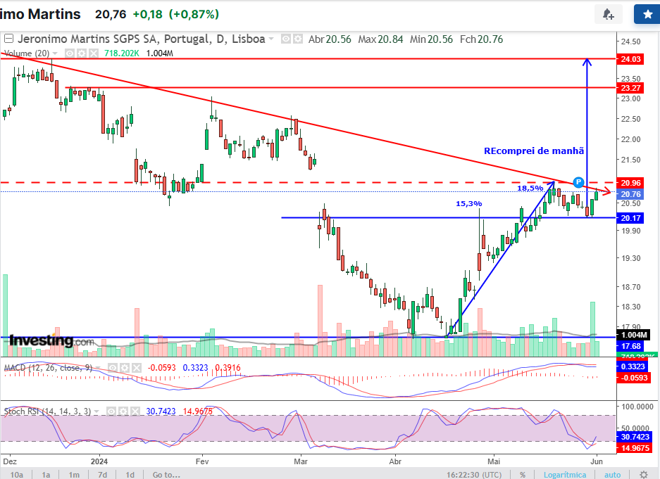 Está tentador mas os gráficos só mostram possível paragem nos 14€. Vou aguardar.