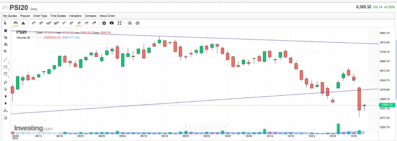 Ainda pode dar a volta mas quando abre em alta e fecha o dia no vermelho é muito mau sinal para os touros.