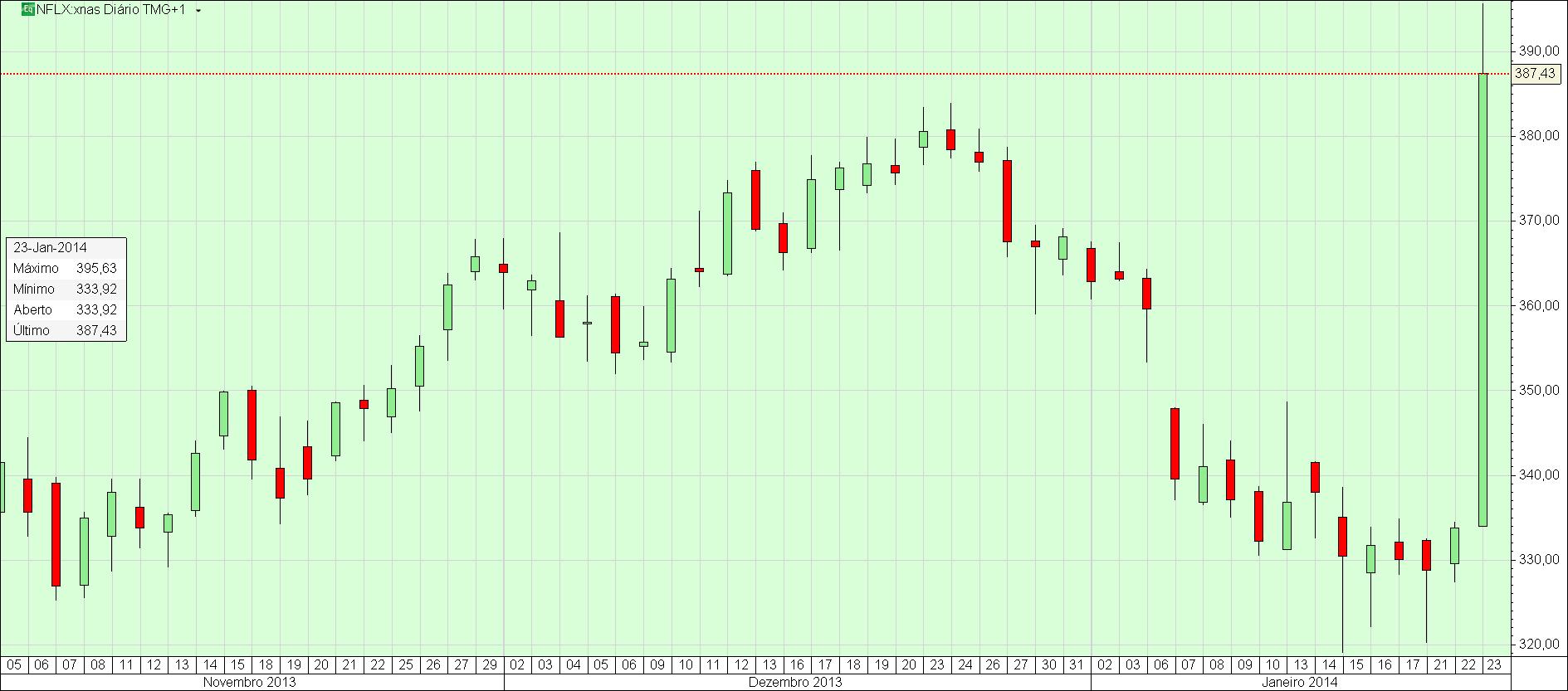 - A Goldman Sachs aumentou o price target da NFLX em 200$ para os 590$, e afirma que os resultados da empresa irão bater as expectativas dos analistas ( resultados serão lançados dia 21 deste mês)
