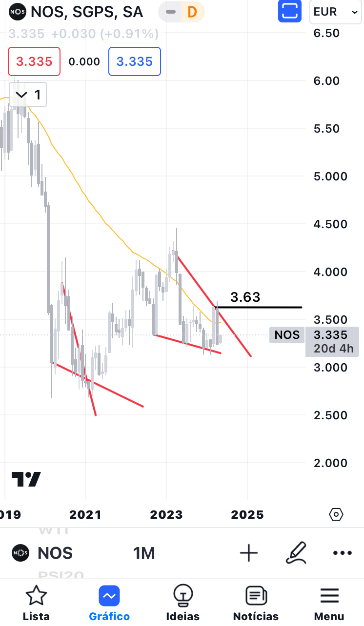 previsor Escreveu:Vou fazer mais um comentário breve, abordando tanto RENE quanto NOS. Ambas têm uma possível cunha descendente, e estou moderadamente otimista em relação a ambas