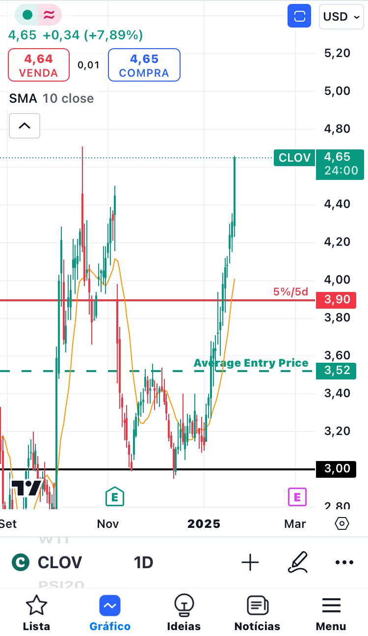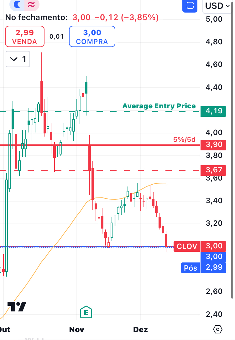 CLOV (Clover Health Investments Corp.): passou de $4.08 para $4.82, com uma valorização de +18.14%.