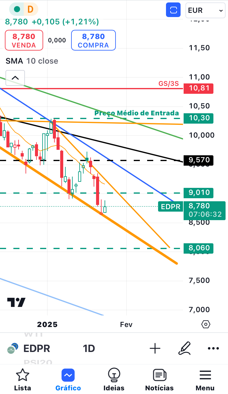 A edpr ainda está acima da linha de suporte