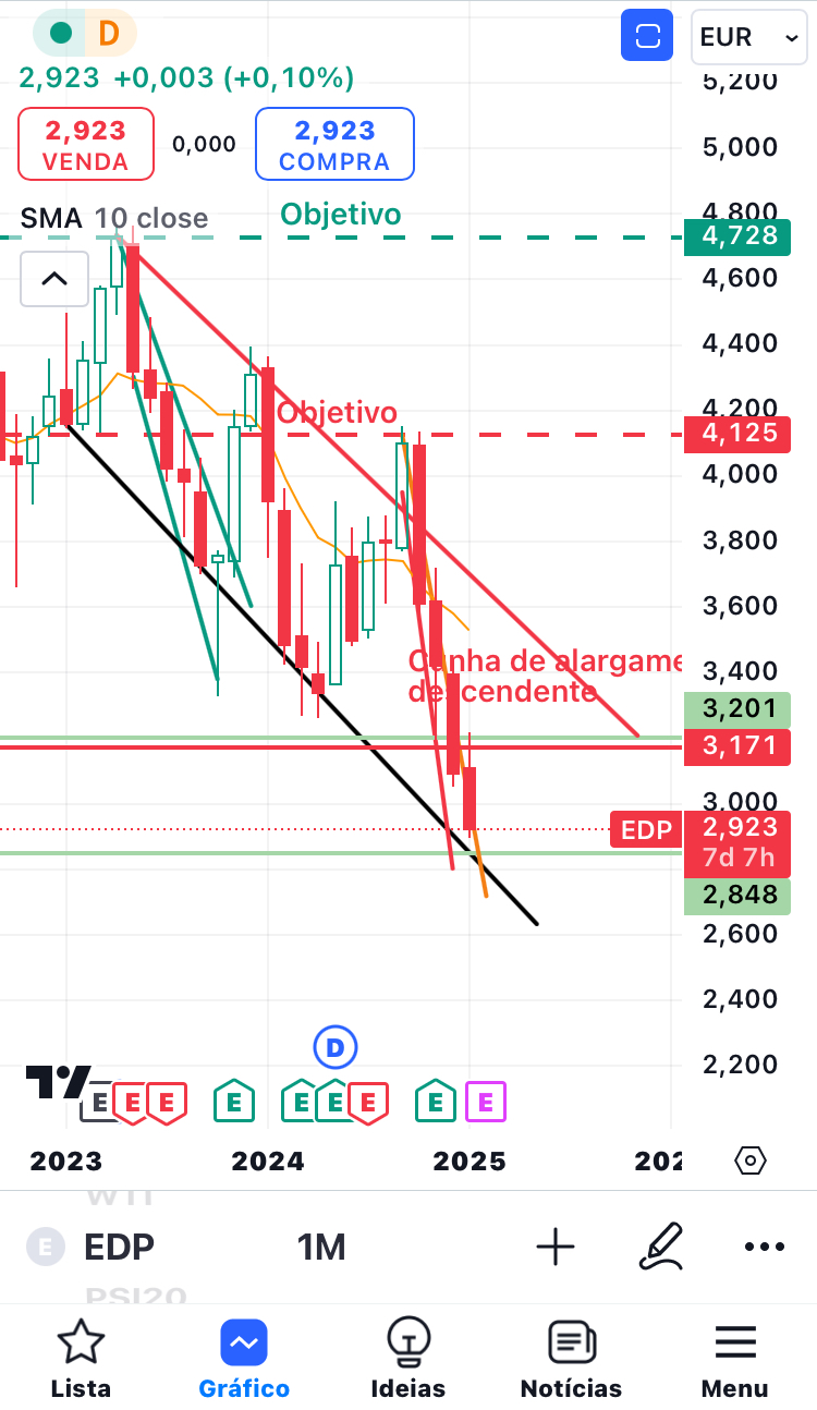 A edp tem uma linha de suporte importante perto no gráfico mensal