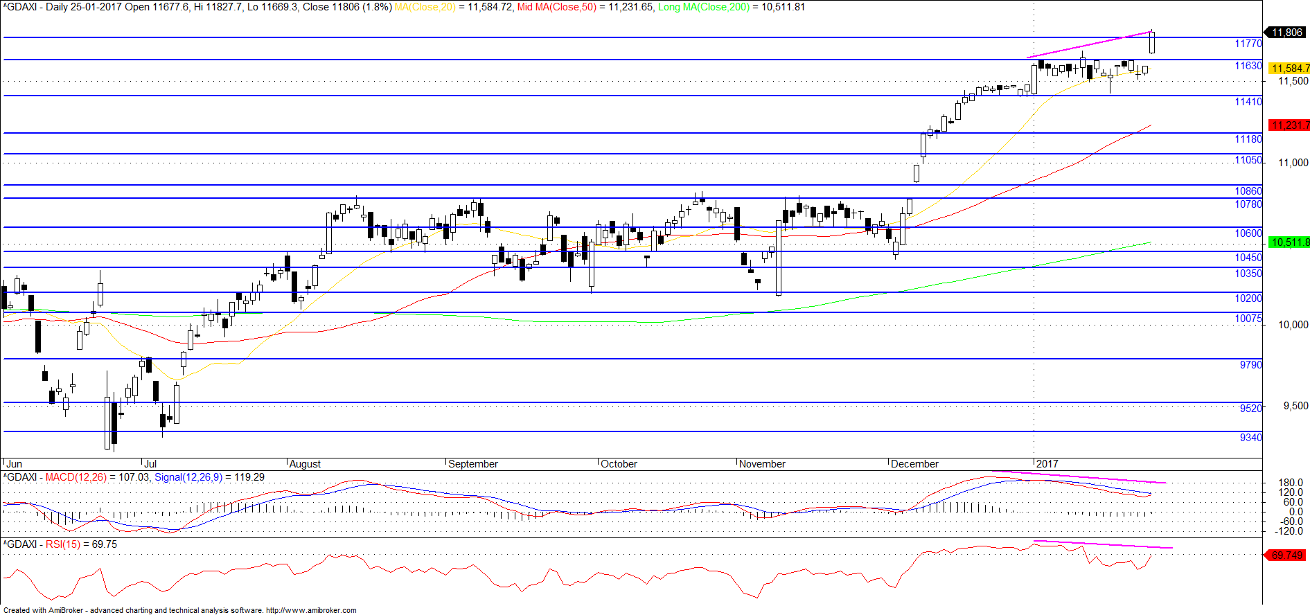 "Finally, the DAX, after three weeks of consolidation it broke free, and with an exclamation point. The 1.8% rip took the DAX to the first level of resistance we have on our charts at just over 11800. Today, it’s working on moving to the next level around the 11920 mark. These levels come by way of a series of lower highs created during 2015 on the descent from record levels. On a move beyond 11920, we will then look to 12079.