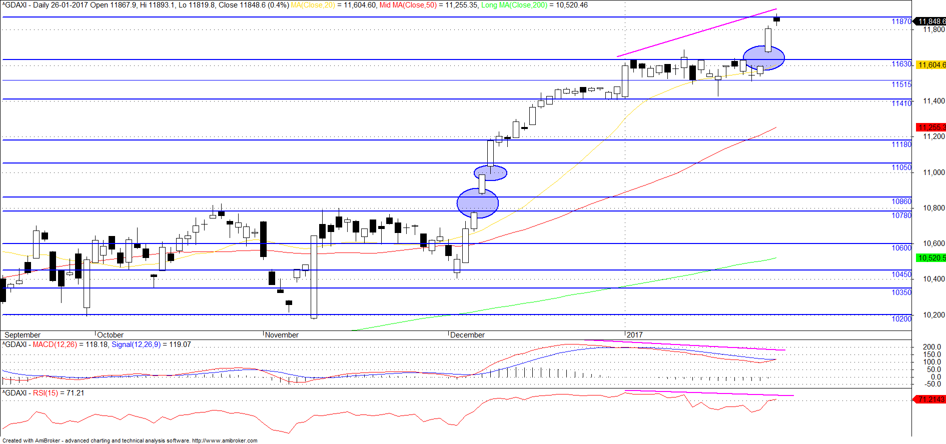 In the very short-term, caution is warranted for establishing new long positions given how strongly the market has rallied in the past couple of sessions; a prudent approach is to wait for a pullback/consolidation on the intra-day time-frames (1,2-hr time-frames). A pullback and hold around 11802, the first level of resistance now turned support, may offer a good spot for traders looking to take on a long. "