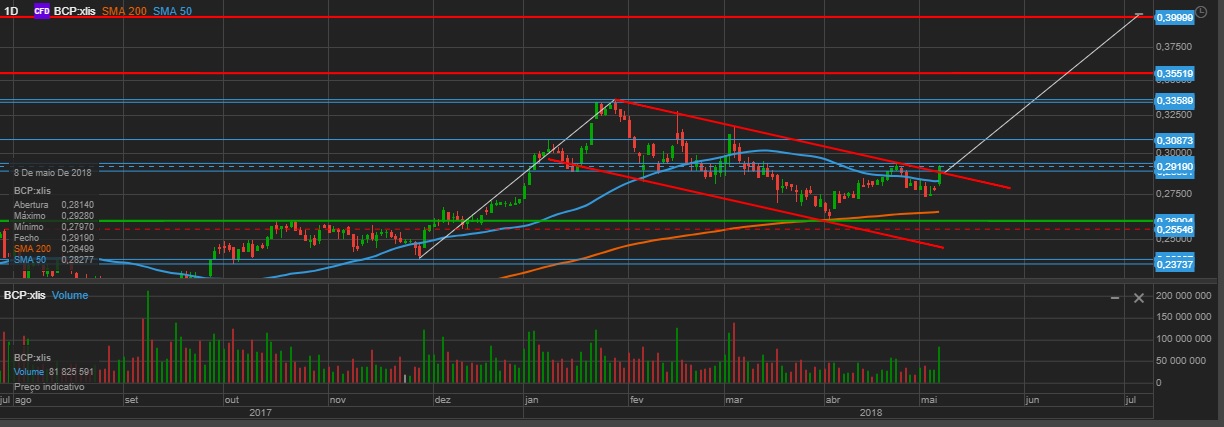 Deixo os gráficos actualizados do BCP que continua o seu "Bull Market".