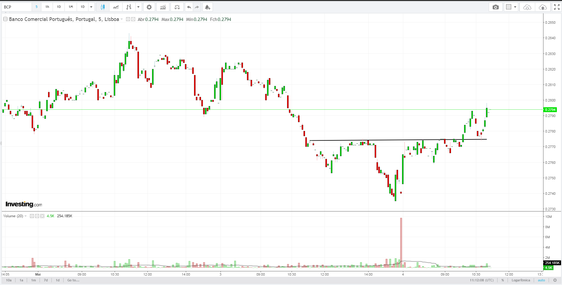 O bcp a criar uma possivel oportunidade de subir mais 0.50% para os 0.28€ ( O.C.O em M5)