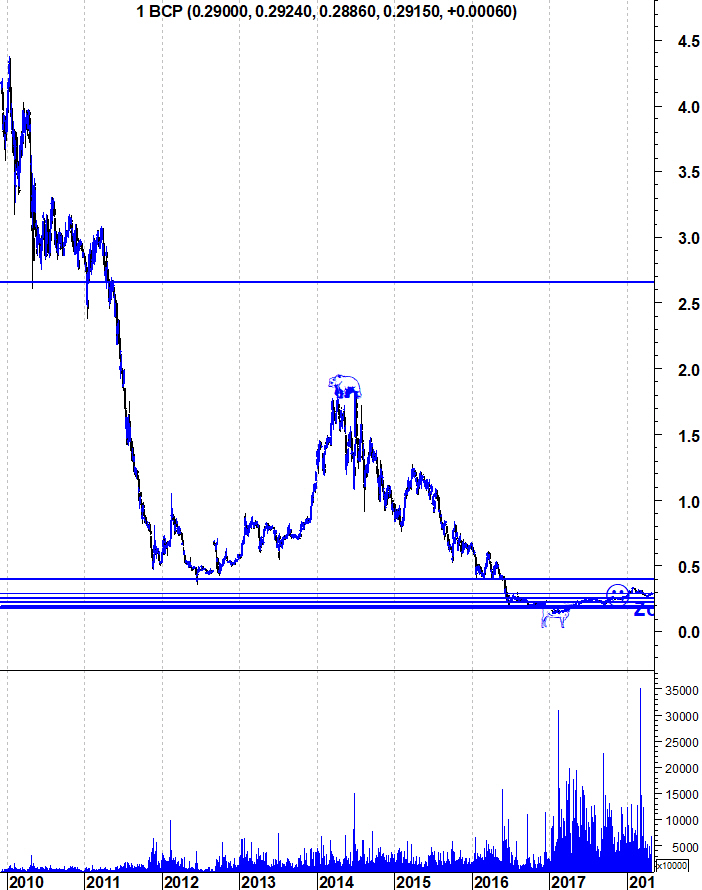 Deixo os gráficos actualizados do "Bull Market" do BCP onde os touros continuam a dominar numa acção que duplicou de valor no último ano.