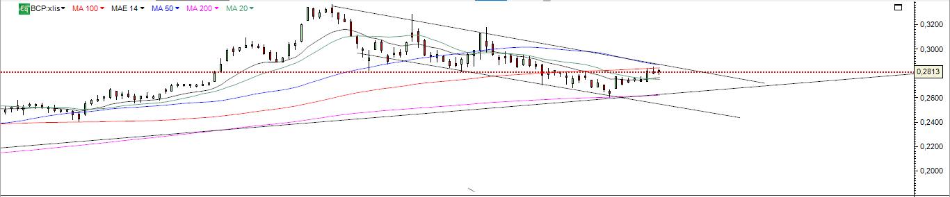 O que é de notar, é que apesar no SP500 já ir acima dos 2700, do DAX se aproximar dos 12600, um patarmar muito importante que limitou a recuperação em 26/02/2018, o PSI não está a vencer os 5500 e o BCP está a marinar junto aos 0.2810 com um volume extremamente baixo o que revela muita incerteza.