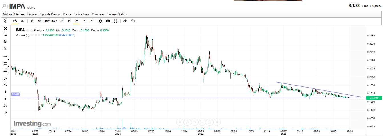 A cotação da IMPRESA tem estado na ponta do "prego" de 09/04/2023 (0,1520 euro), muito próximo já da ponta do "prego" de 16/10/2023 (0,1505 euro). Os "pregos" são uma espécie de indicadores avançados ...