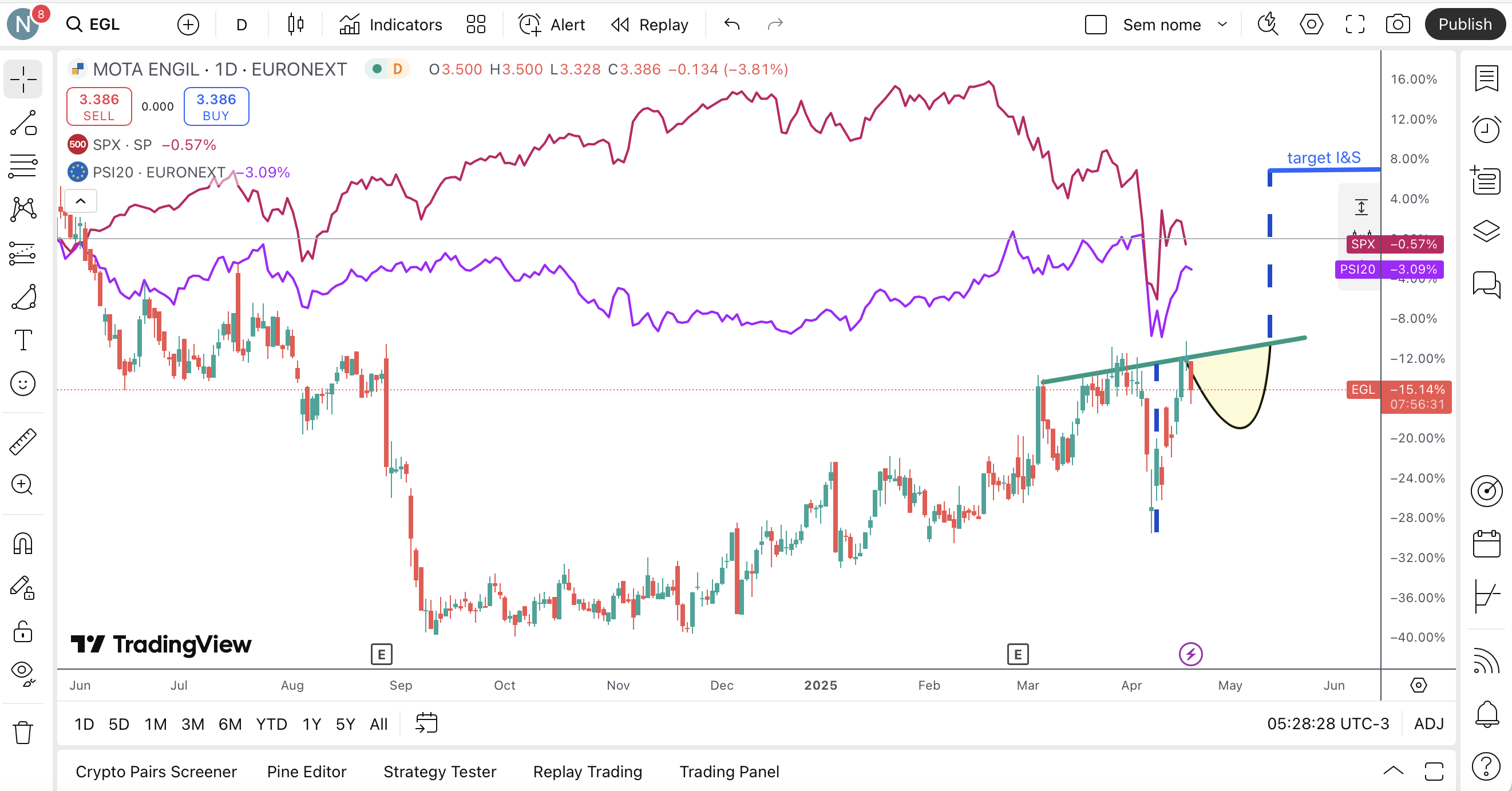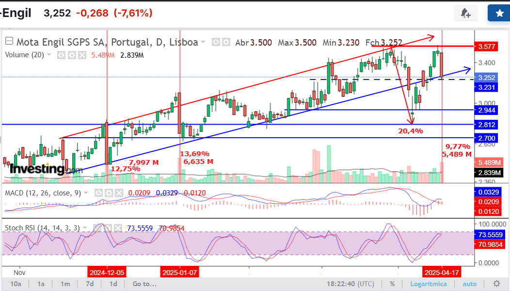 Entretanto Já se passaram mais de duas semanas completas de negociação desde que essa informação foi divulgada ao público (e neste fórum), nesse entretanto já a cotação caiu por causa das tarifas e já quase recuperou ao topo do canal ascendente de curto prazo.