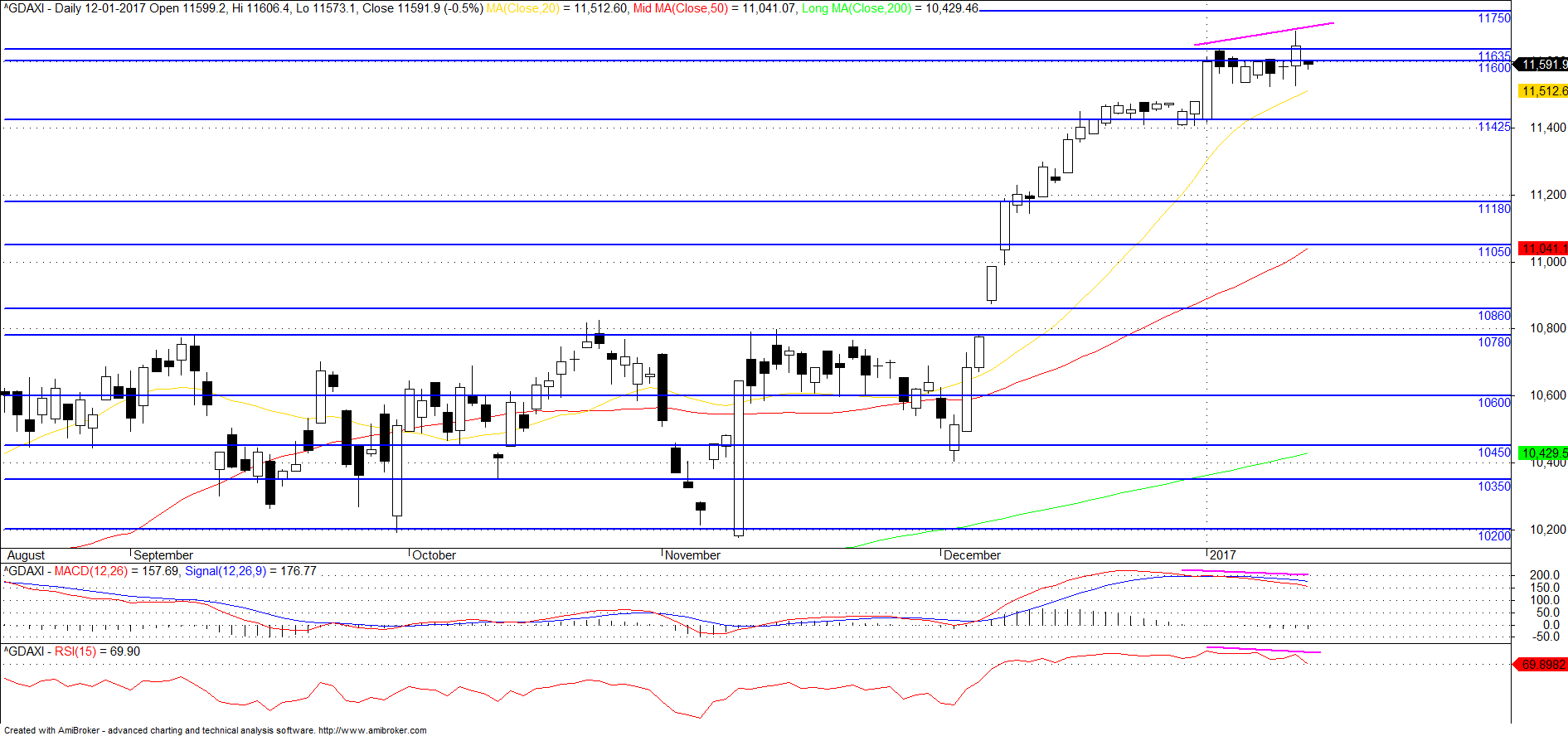 O DAX tem para já um suporte na zona dos 11400 que foi ultrapassada no inicio de dezembro e desde ai não mais foi quebrada em baixa.