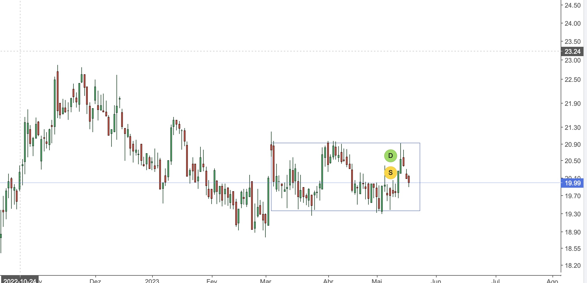 um fecho acima dos 20,93+- e tem projeção nos 22,56+-