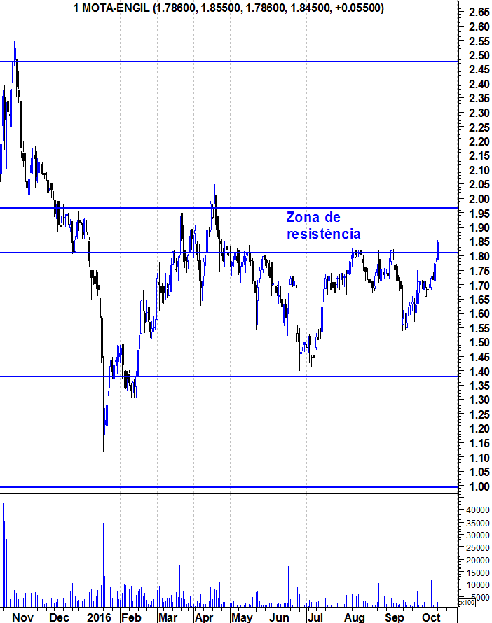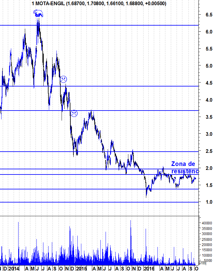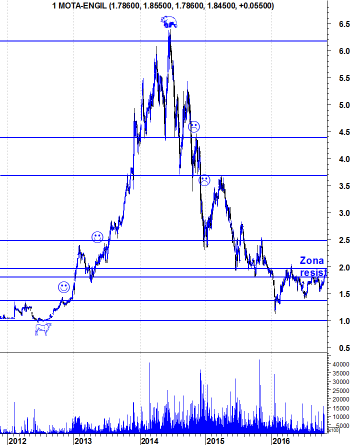 A Mota-Engil entrou hoje na sua zona de resistência. Dada a velocidade das últimas subidas, não acredito que a zona de resistência seja ultrapassada neste primeiro ataque. Seria interessante, algum tempo a marinar nesta zona para, daqui a uns tempos, o verdadeiro ataque a uma resistência que - caso seja quebrada - abre portas à acção.