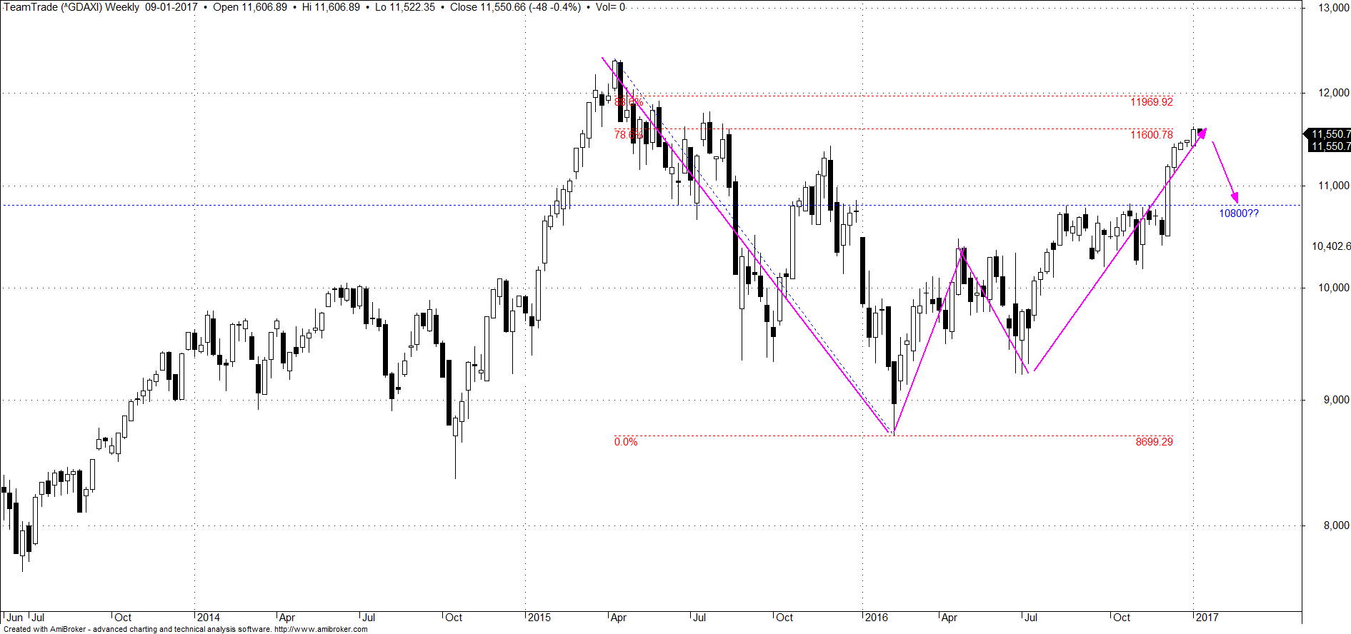Olhando para o grafico semanal o unico periodo recente em que DAX teve RSI acima do valor atual foi em Março-ABril de 2015, mas depois o mercado após este periodo extenso de forte subida e indicadores tecnicos esticados ao limite , caiu forte entre abril e outubro de 2015.