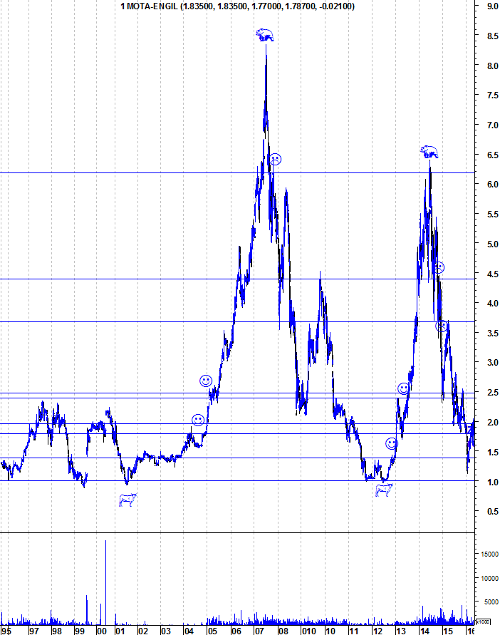 Aqui ficam os gráficos actualizados da Mota cujo potente ressalto neste "Bear Market" foi travado pela força da importante zona de resistência.