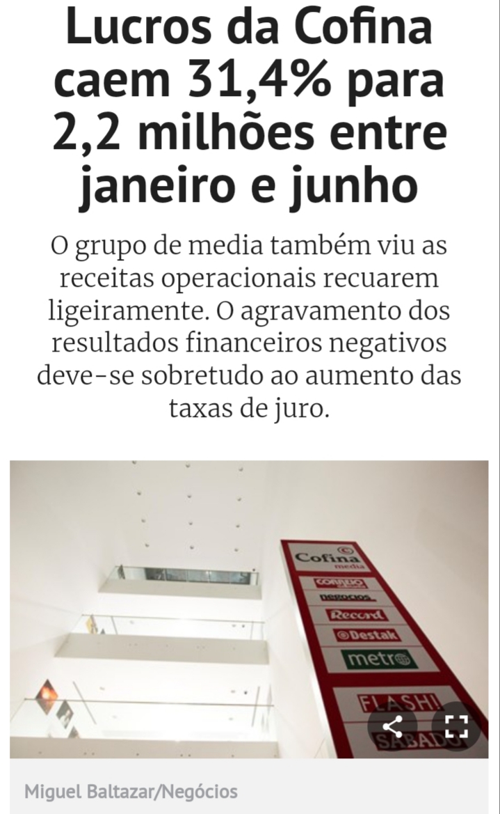 Ficamos a saber que a Divida da COFINA MEDIA é de 31,2M€.
