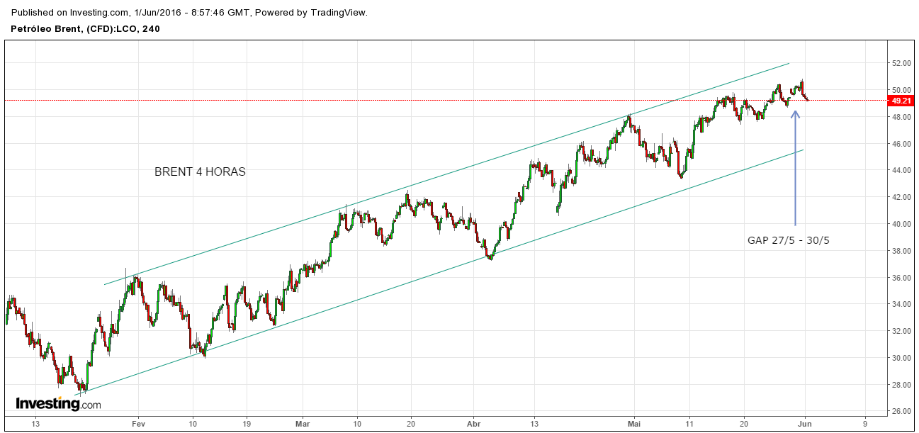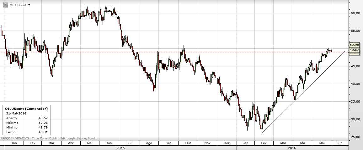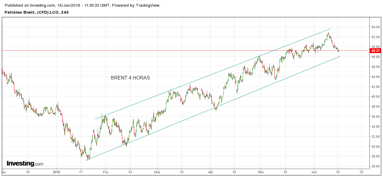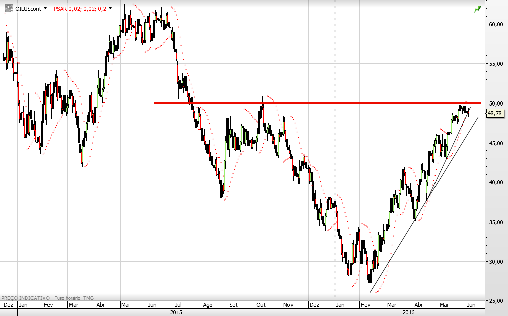 Parece uma resistência bem definida nos 50$... Não me parece haver grande variação até ao resultado do Brexit