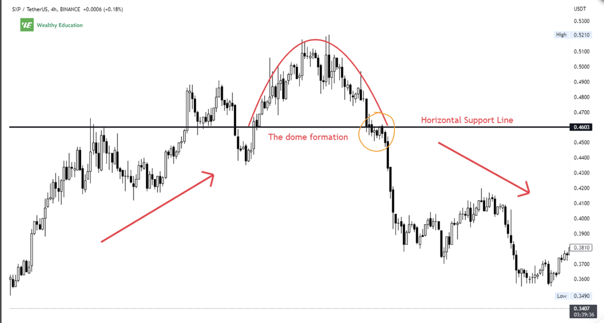 It is formed when prices begin to slow down and round off at the top of an uptrend. This makes the formation look like the shape of a dome or rounded hill.