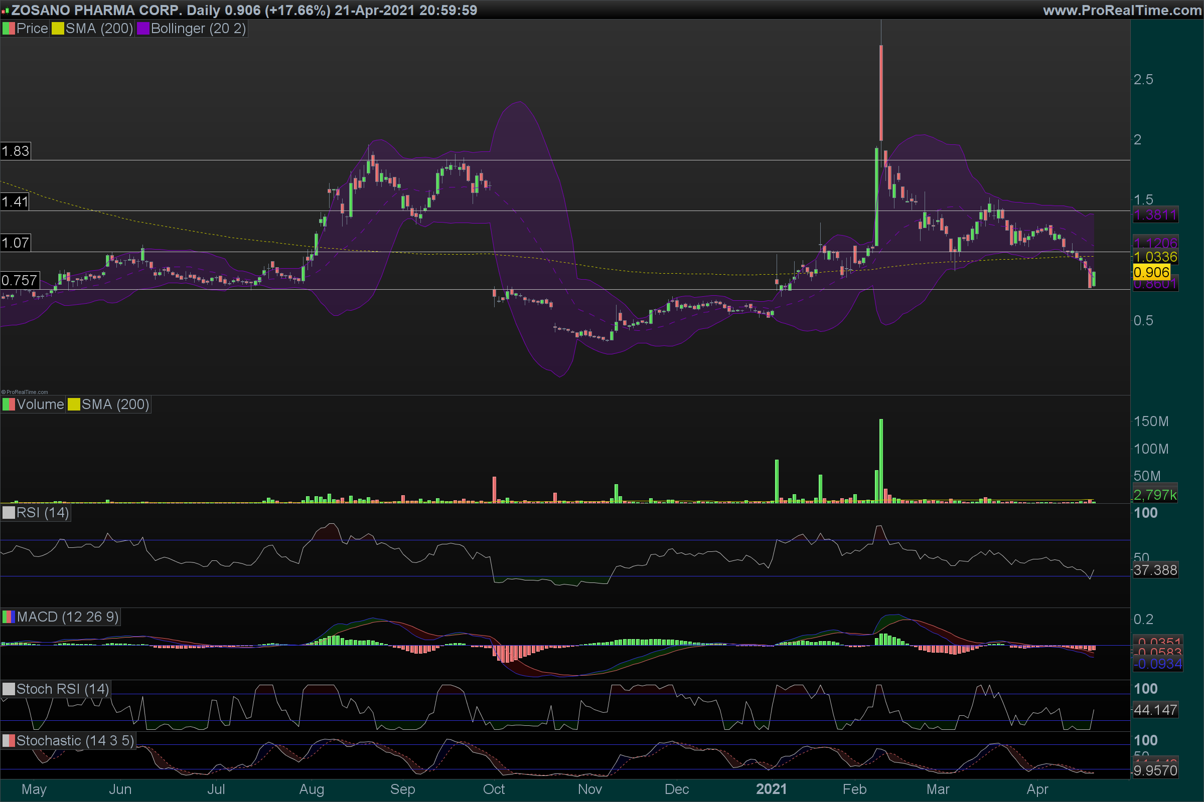 Nop. Não uso osciladores; os osciladores, tal como as MAs, reflectem somente o que se passou para trás e embora muitos analistas assumam que possuam capacidade predictiva do movimento subsequente do preço, eu pessoalmente discordo. Quando me dediquei a estudar alguns, dos mais comuns (tipo Stoc, MACD, RSI etc) verifiquei que a quantidade de falsos sinais superava o de sinais positivos, pelo que deixei de usar. Reconheço alguma validade, melhor dizendo utilidade, em divergências aí os sinais positivos equiparam-se aos maus sinais.