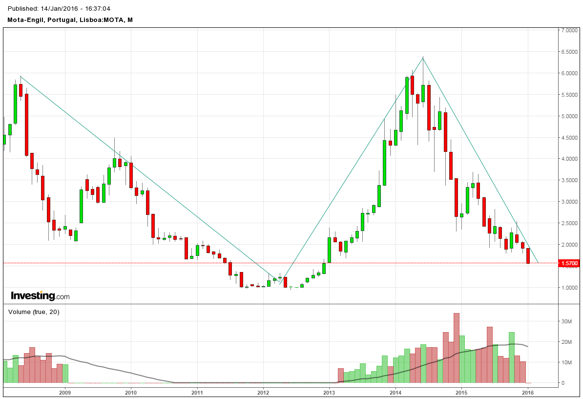 Eu também estou dentro a longo prazo e todos os dias desejo que o sentido se inverta, mas, já ando nisto há meses. À luz das evidências sabemos que Angola, o Brasil, o petróleo e a construção são quatro fatores decisivos para a Mota e estão todos na lama. Estou crente que o preço do petróleo inverta a tendência dentro em breve, mas depois até que isso tenha impacto na economia...