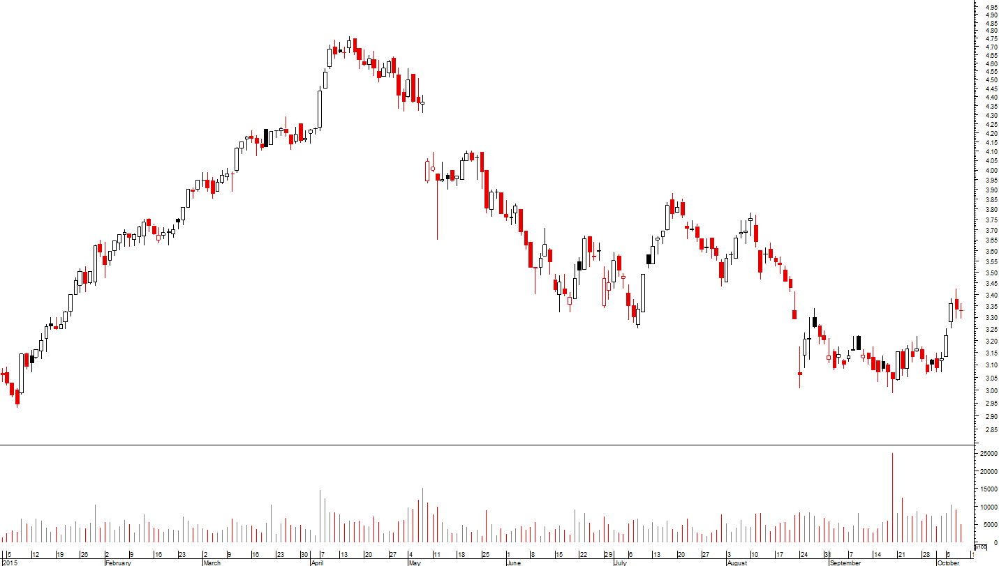 Título em bear, topo do canal descendente, Toque nas MME 50, mercados à qual está exposta....