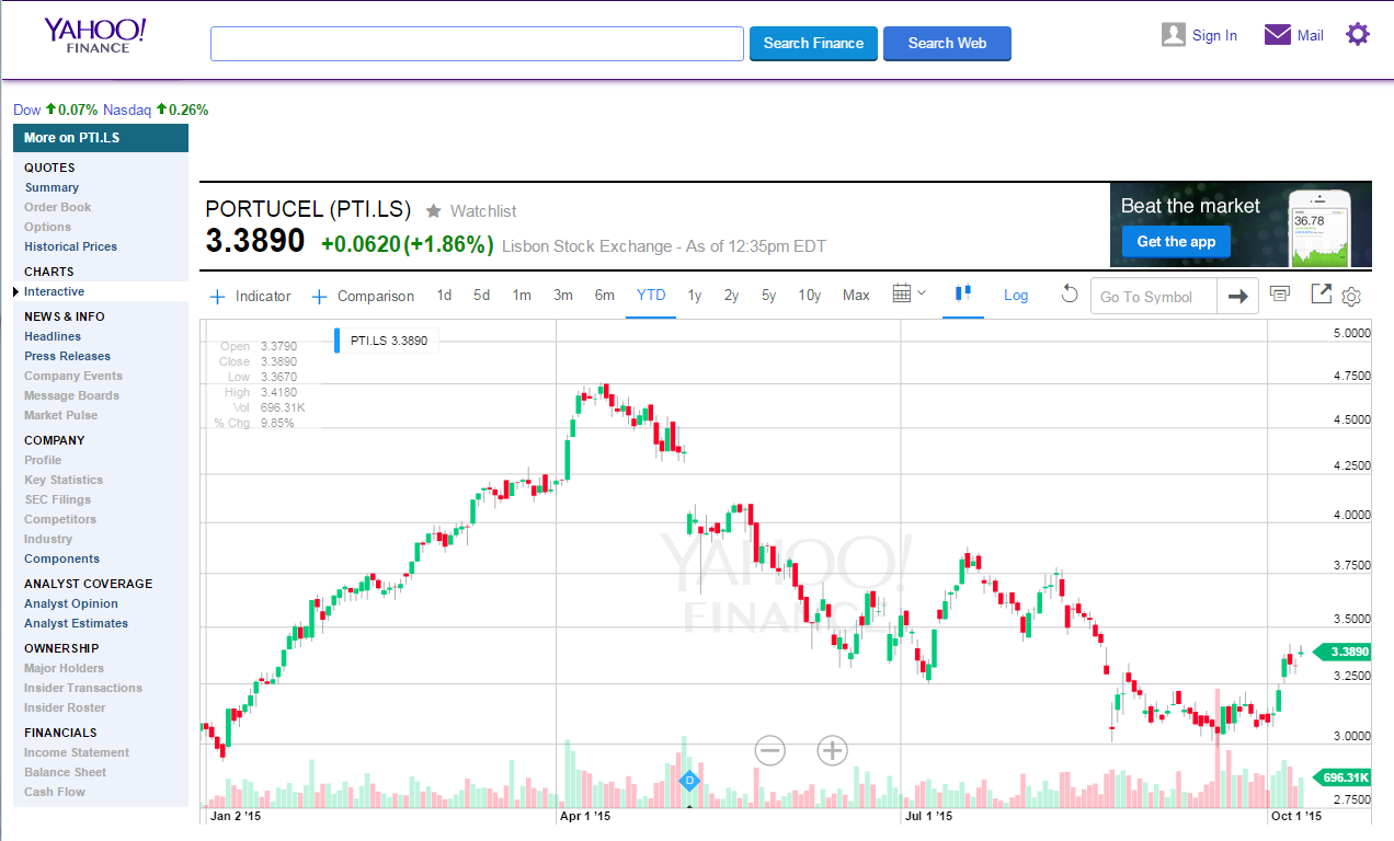 fui lá e abri o da portucel, que NÃO está ajustado a dividendos: