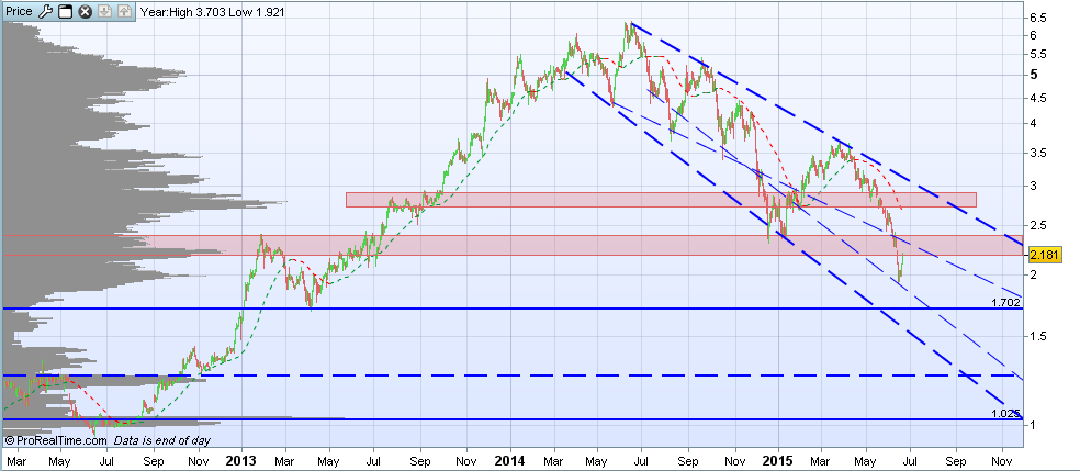 Caro katolo, não sei se chegará para te entusiasmar mas o cenário mais otimista neste momento que consigo ver no gráfico é uma ida aos 2,75 (3<->4 meses).