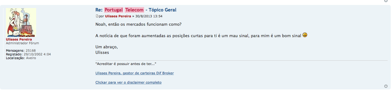 As opiniões expressas baseiam-se essencialmente em análise fundamental, e na relação entre o valor de mercado dos ativos e as suas perspectivas futuras de negocio, como tal traduzem uma interpretação pessoal da realidade,devendo como tal apenas serem consideradas como uma perspetiva meramente informativa sobre os ativos em questão, não se constituindo como sugestões firmes de investimento