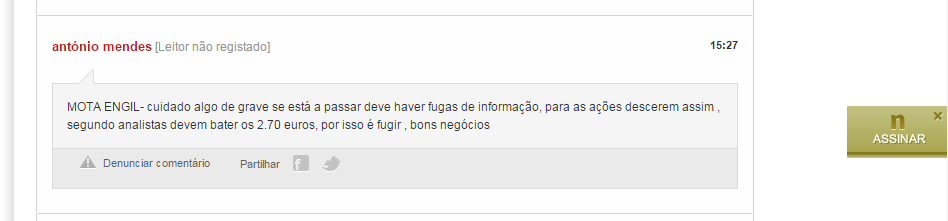 Comentário no Jornal de Negócios.