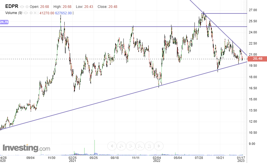 Não, Ulisses Pereira (artigo do Ulisses Pereira no Negócios, de 19/12/2022), é verdade que a EDPR teve o maior Bull Market de que há memória na Bolsa portuguesa, mas está longe de estar a preparar-se para entrar num Bear Market. O que se passa para esta aparente apatia/fraqueza da cotada tem a ver quanto a mim com uma questão recorrente no início de cada ano: estaremos ou não em véspera de um novo aumento de capital?