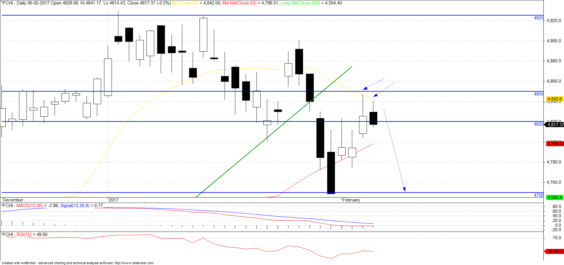 Como o BX4 é um produto alavancado (2x), limito sempre a perda a 5%: o que daria uma subida de 2,5% do índice .