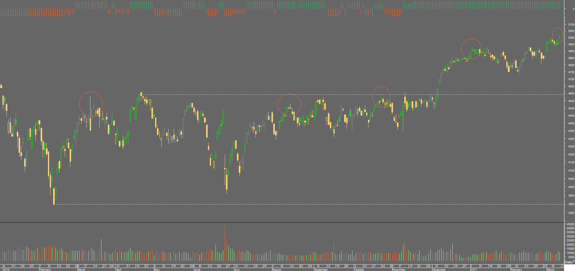 É próximo de um número redondo, corresponde a uma resistência e tem um Gap up maior que 4% para fechar.