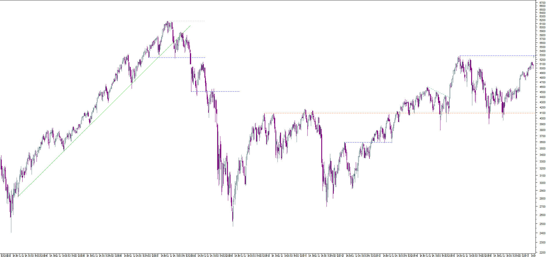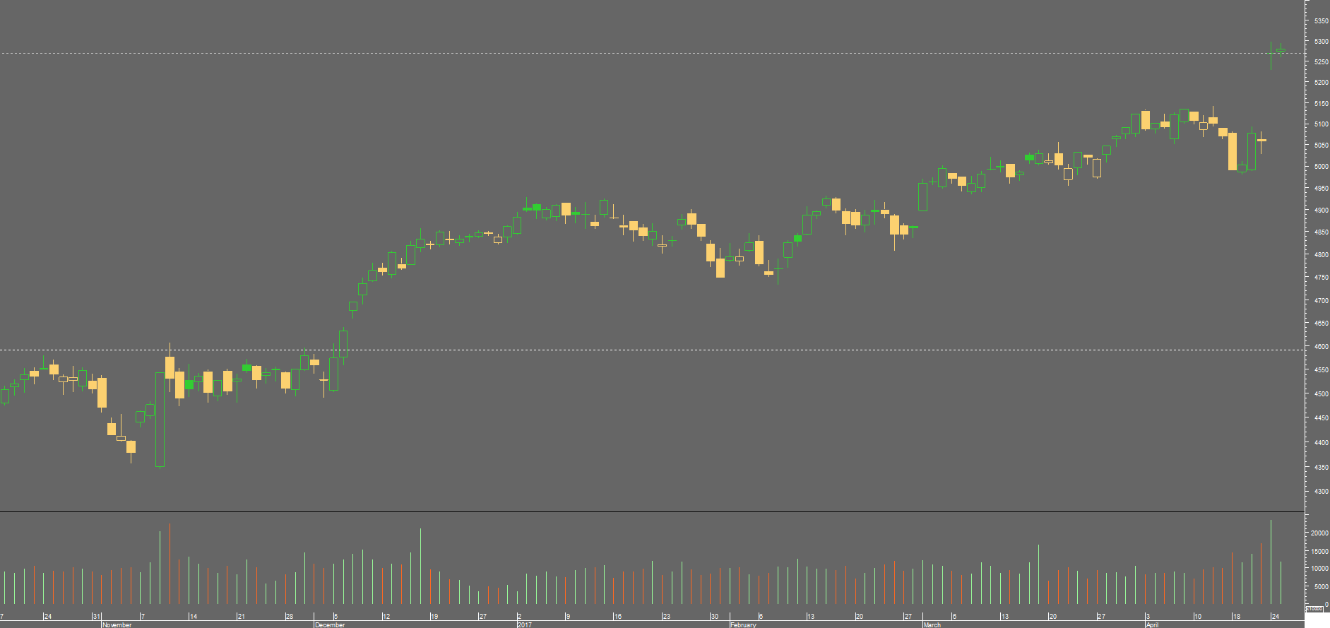 Mas basta hoje no final da sessão ou amanhã cedo os investidores não recolherem o capital ganho hoje, que será mau sinal. Penso que se a média deste mês se cifrou nos 5085 face ao ultimo grande suporte dos 4500 teríamos um valor na ordem dos 5375 com a subida de hoje.