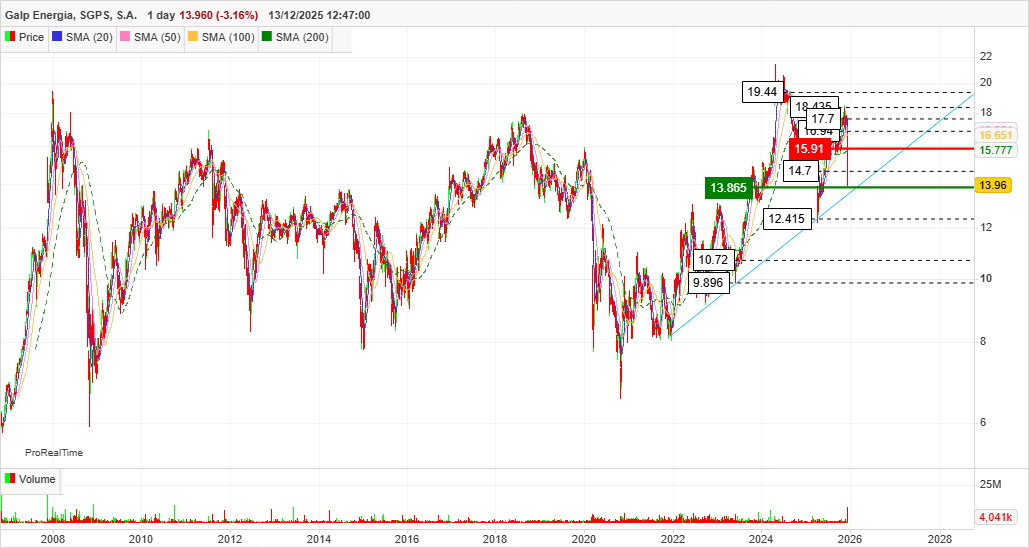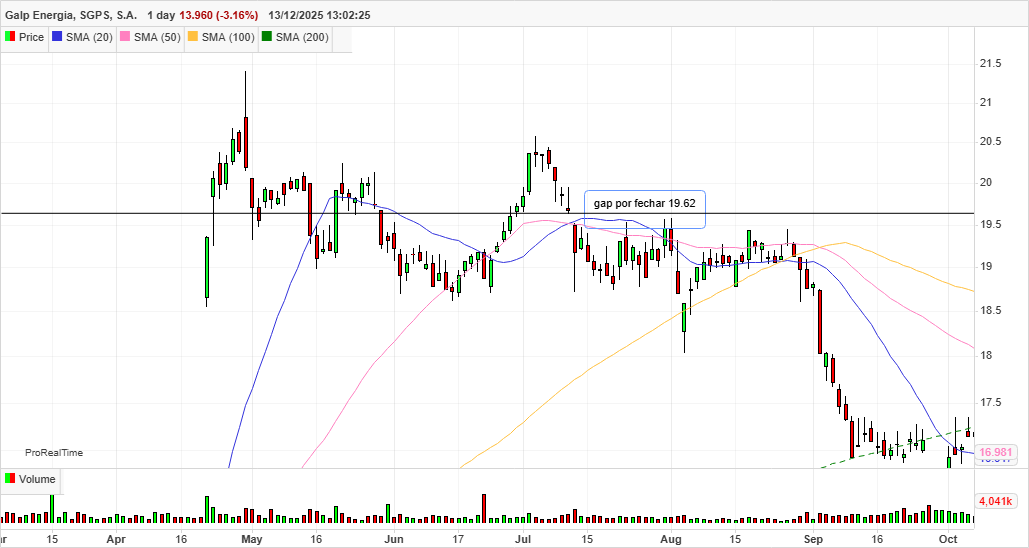 A Galp tem um histórico bastante consistente neste ponto: os gaps relevantes em diário acabam, mais cedo ou mais tarde, por ser fechados. Não é uma regra absoluta, mas é um padrão recorrente ao longo dos anos e que, na minha opinião, não deve ser ignorado na análise técnica.